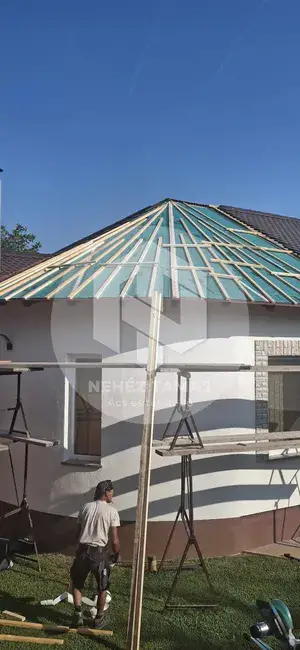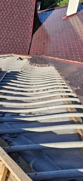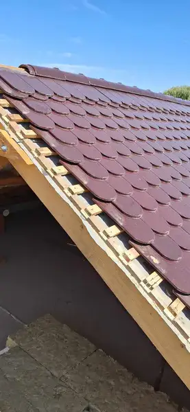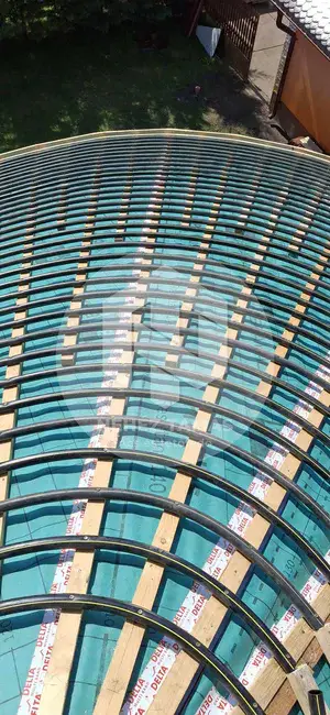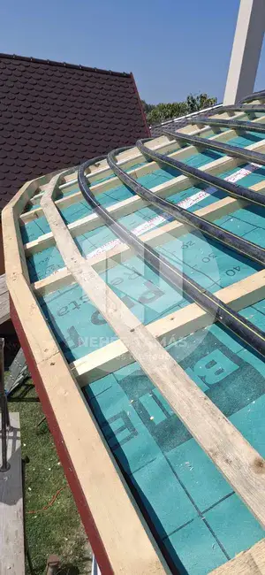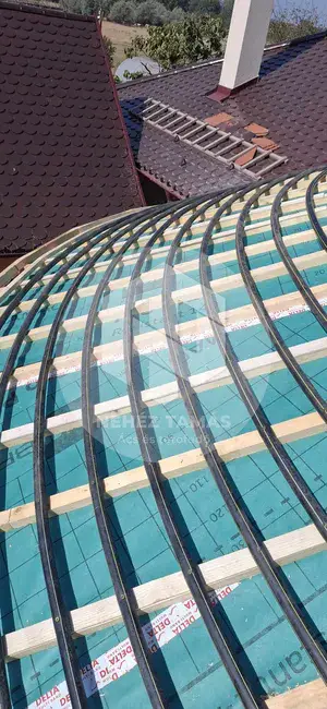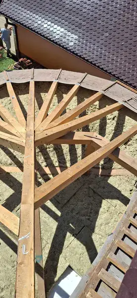Das ist nicht das erste geschwungene, runde Dach, das wir gezimmert und gedeckt haben, aber es gibt die Lektion jetzt auf.